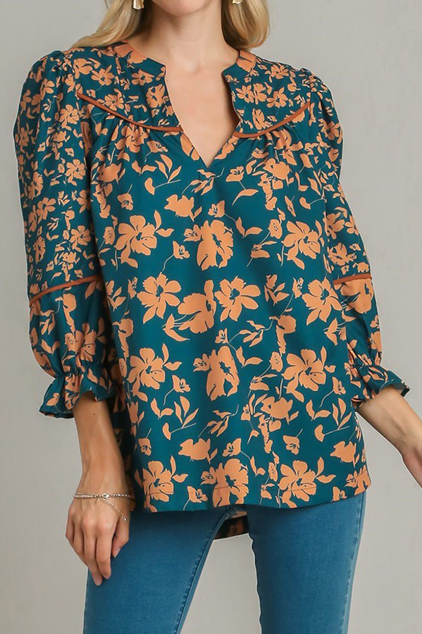 FLORAL PRINT LONG PUFF SLEEVE BLOUSE TOP